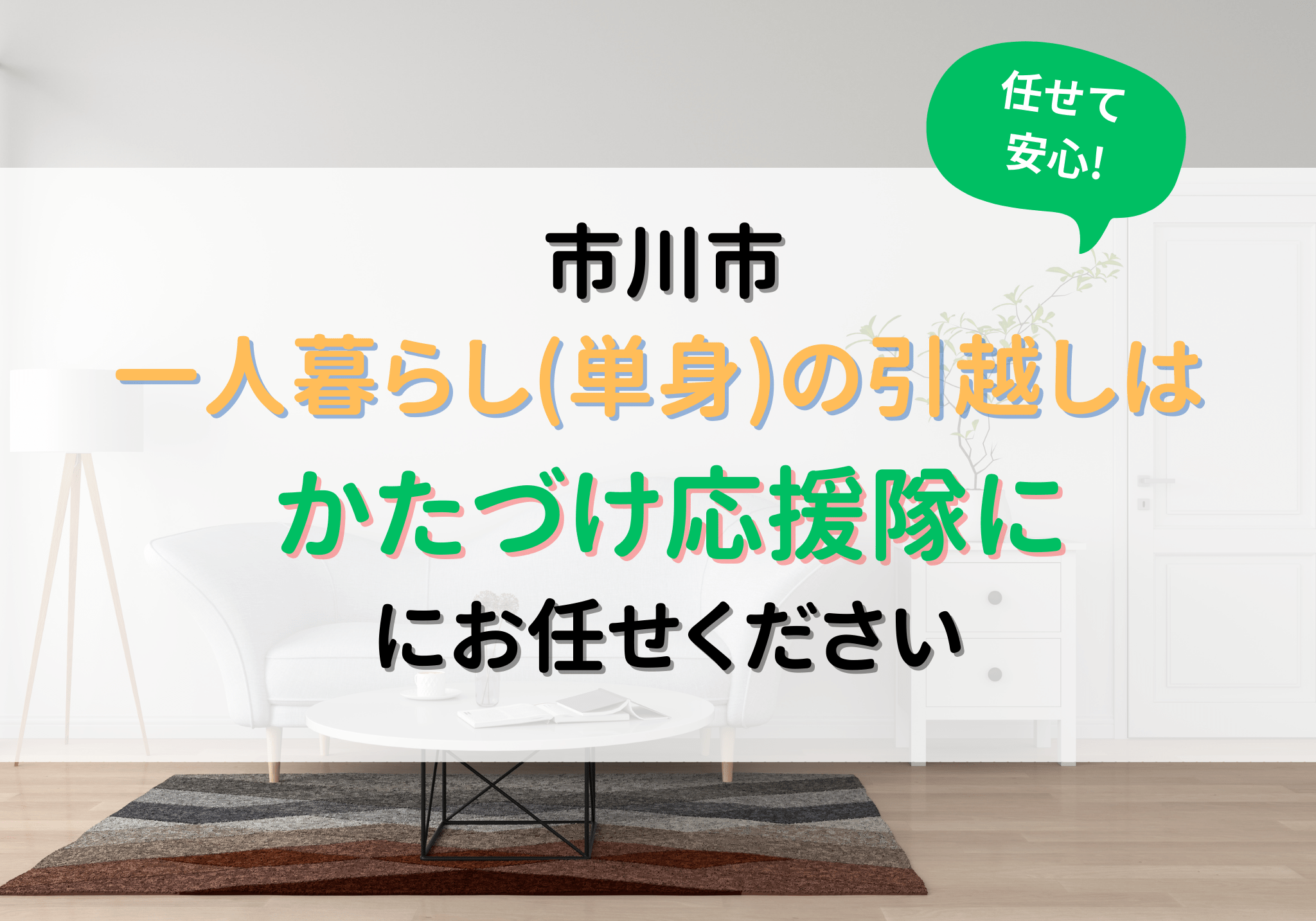 市川市で一人暮らし(単身)の引越しをする際、周囲のサポートを受けられず困っている方は便利屋「かたづけ応援隊」にお任せください。引っ越し費用の目安は、16,500円〜ですがサービス内容により異なります。お見積もりは無料なので、お気軽にご相談ください。