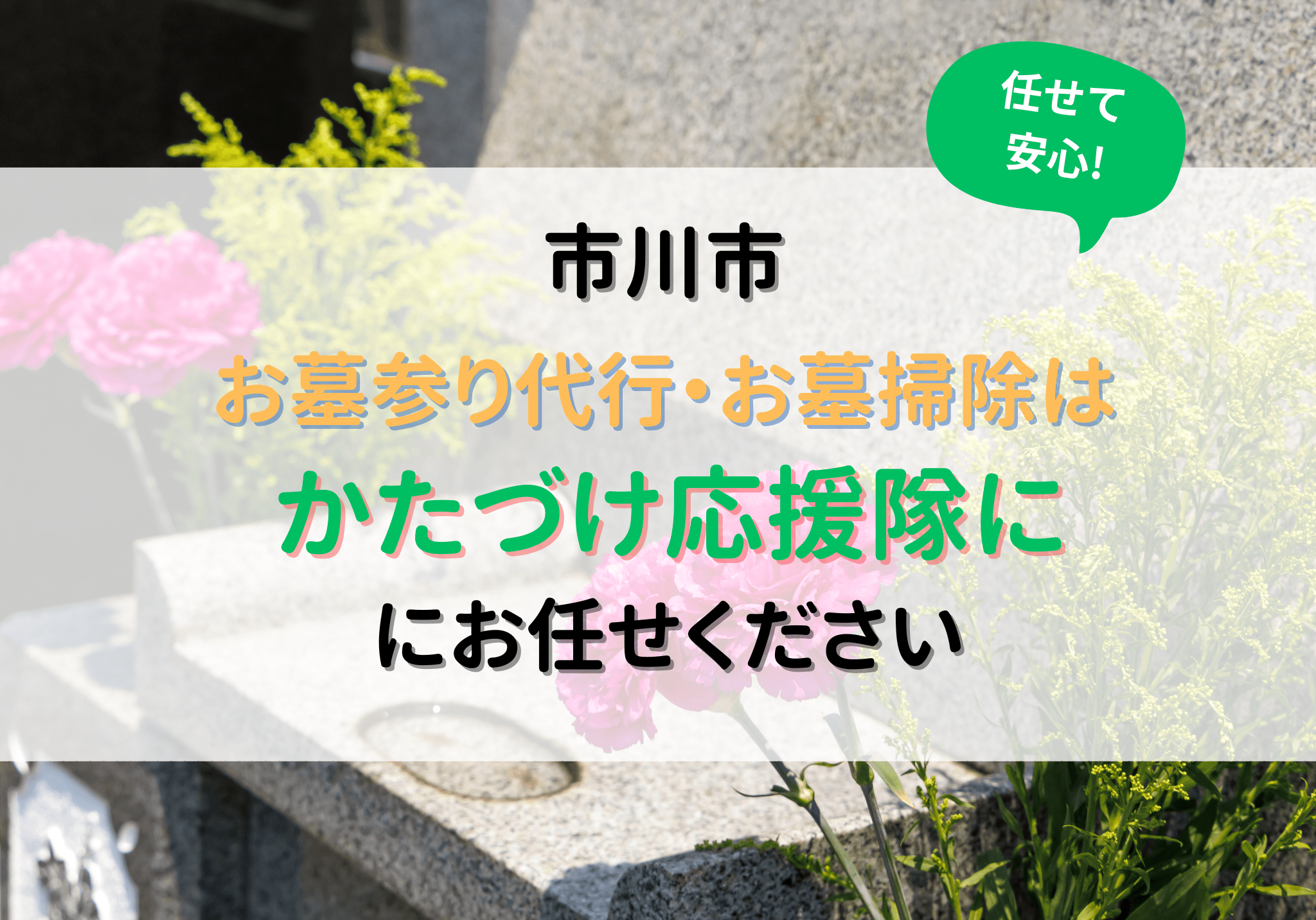 市川市で墓参りやお墓掃除にお困りの方は便利屋「かたづけ応援隊」におまかせください。墓参り代行やお墓の掃除は8,800円から対応いたします。お見積もりは無料ですのでお気軽にご相談ください。